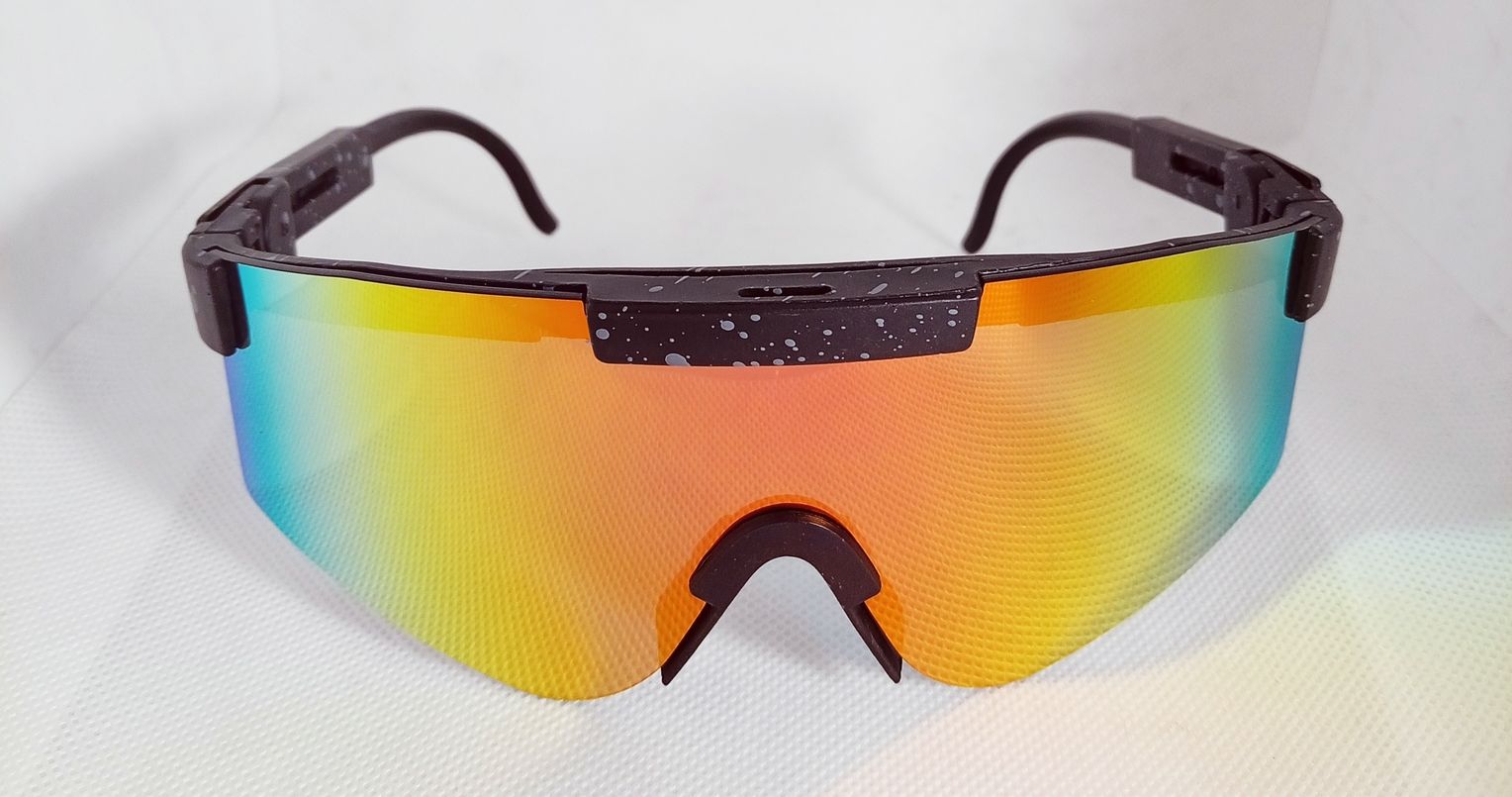 Gafas deportivas unisex con lentes espejados multicolor. Protección UV total, diseño ligero y ajuste cómodo para ciclismo, running y deportes al aire libre.